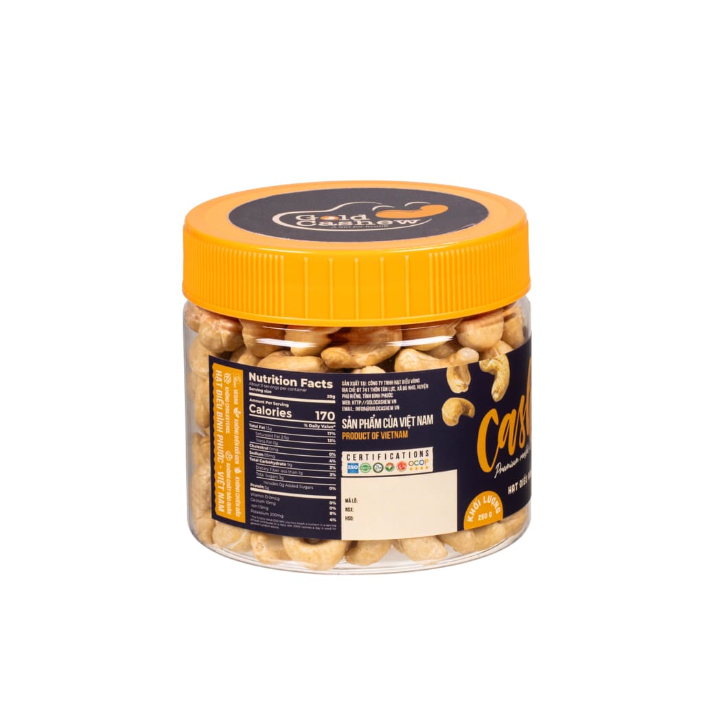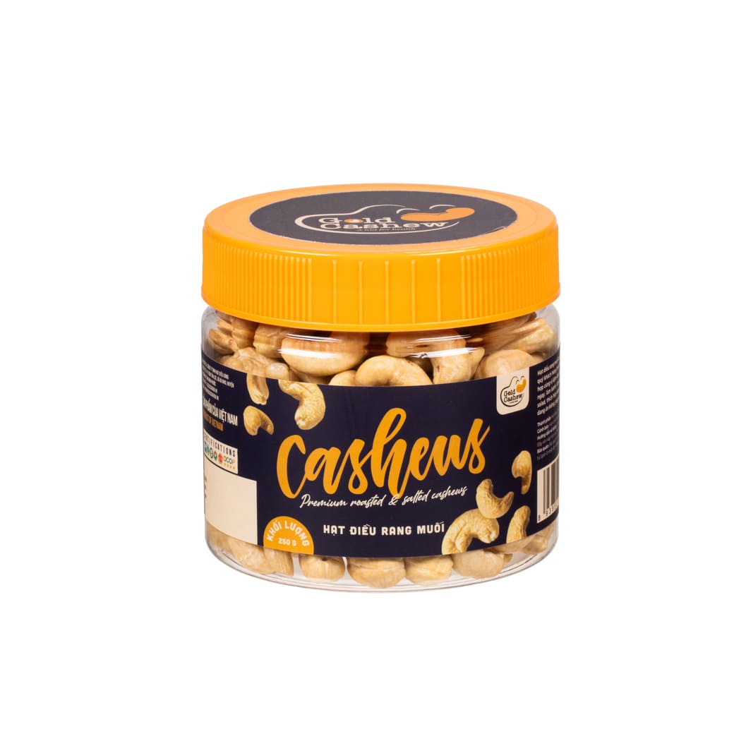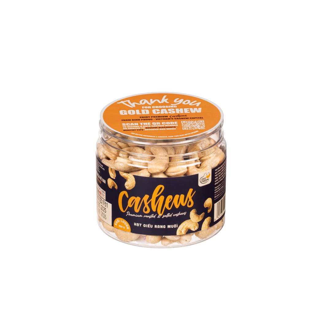 Goldcashew Salted Roasted Cashews 250g deliver convenience, elegant presentation, and authentic Vietnamese flavor—making them perfect for daily use or as a thoughtful, high-quality gift for both local and international markets.