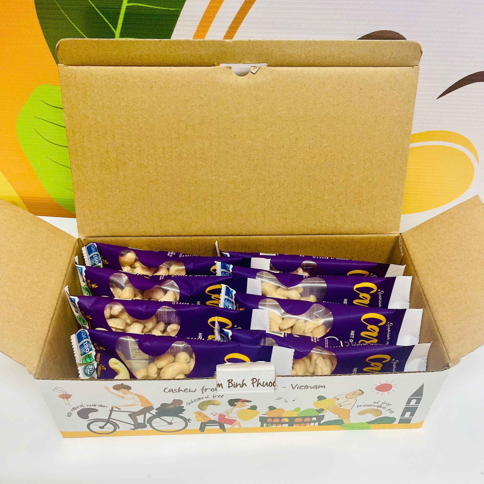 Salted Roasted Cashews 50g are the perfect choice for those looking for a clean, tasty, and convenient snack to enjoy in a busy lifestyle. Made from Grade-A Binh Phuoc cashew nuts, carefully selected for their large size and firm kernels, this product delivers the rich, buttery flavor that Vietnamese cashews are known for.
